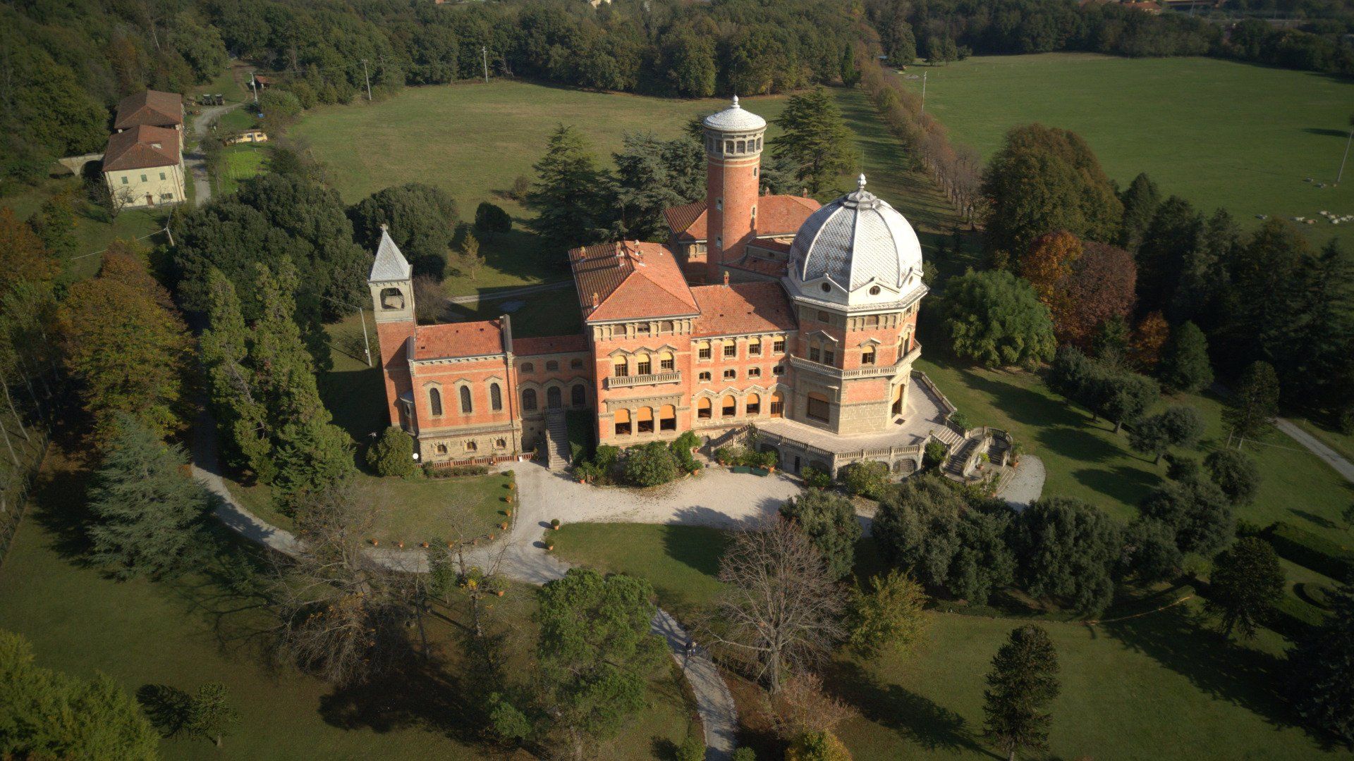 The building, born as a summer residence of the Musso Piantelli family, is located within an English park of about 75 acres, in the centre of a larger area of over 250 acres, originally an agricultural estate. It is today a historic residence.